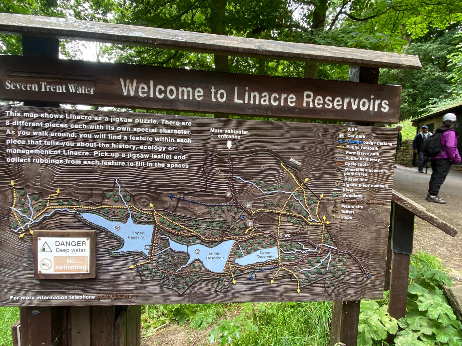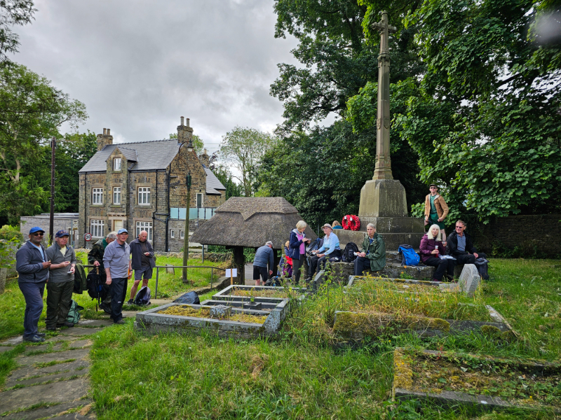 The next section encountered one or two stiles, which prompted a few comments of colourful language. Reaching farm buildings, the farmer allowed us to shelter from the heavy rain. After it had eased, we continued to Linacre Reservoirs, where we had lunch.