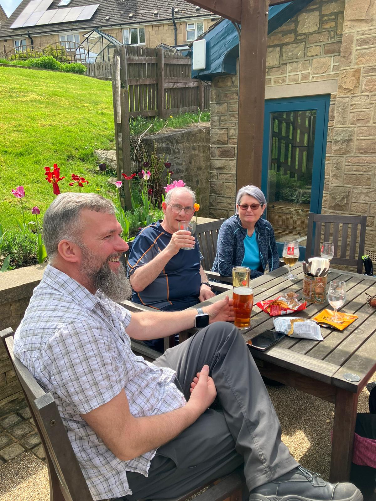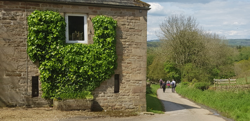 The weather was lovely the sun was out and most had already taken their coats off, we carried on going up but by now the going was a bit easier. After leaving the wooded area we finely started to go down wards towards a tarmacked road and a single lane stone bridge where we turned left into a field, following the river Derwent downstream and onto the village of Beeley for our lunch break.