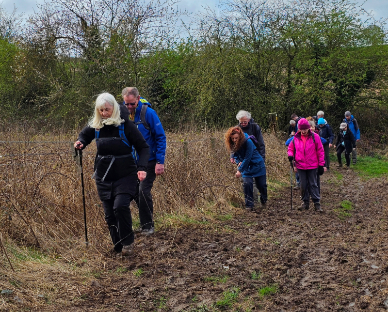 Walking through the village it was decided that the walkers should have a look at the ruins of Spofforth Castle (and a photo opportunity). The walk out of the village and across open fields started off a bit wet under foot, after crossing a few fields it started to get a bit muddy. Then we were looking at a lot of standing water which we managed to negotiate without too many people getting their feet wet. The ground started to rise in front of us and a rabbit ran off into the hedge row and a hare looked at these mad humans before lopping off into a large patch of Gorse. Red Kites followed the group to a well-earned coffee break at this point we thought the ground underfoot couldn’t get any worse how wrong we were. Walking round the back of Plompton Hall the mud was very bad and difficult to keep ones footing with two of the group slipping and ending up in the mud. Walking down a farm track Graham pointed out four Dear crossing open fields, Lunch stop was at a very nice cafe on the side of the river Nidd where we encounted the first of the very sort showers. After lunch we continued into Knaresborough where people could go to the pub for a well-earned drink or if not then a cup of tea meeting back at the coach for the ride home.